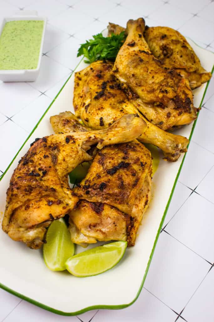 And, with an amazing green and herbaceous Peruvian chicken sauce, you can dip and dunk this moist chicken until you’re full and happy.
